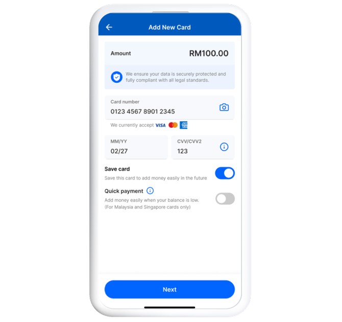 Add money with your preferred international credit, debit or prepaid card as well as reload PINs available at major convenient stores and petrol stations