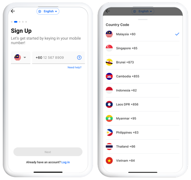 Countries eligible for TNG eWallet registration: