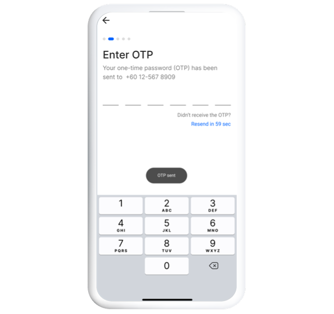 Enter the one-time password (OTP) sent to your WhatsApp with the same mobile number Note: Please download and signup for a WhatsApp account for a seamless registration