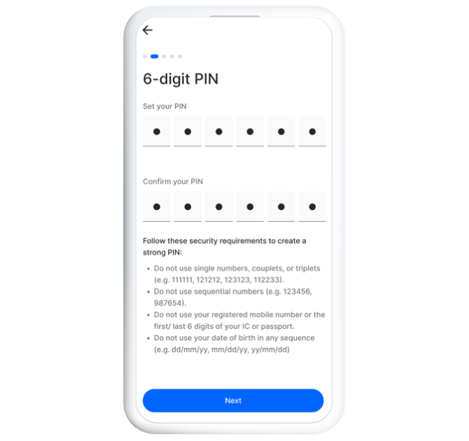 Set your 6-digit PIN and input your personal information