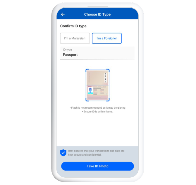 Select “I’m A Foreigner”, then select your “ID type”, and take a picture